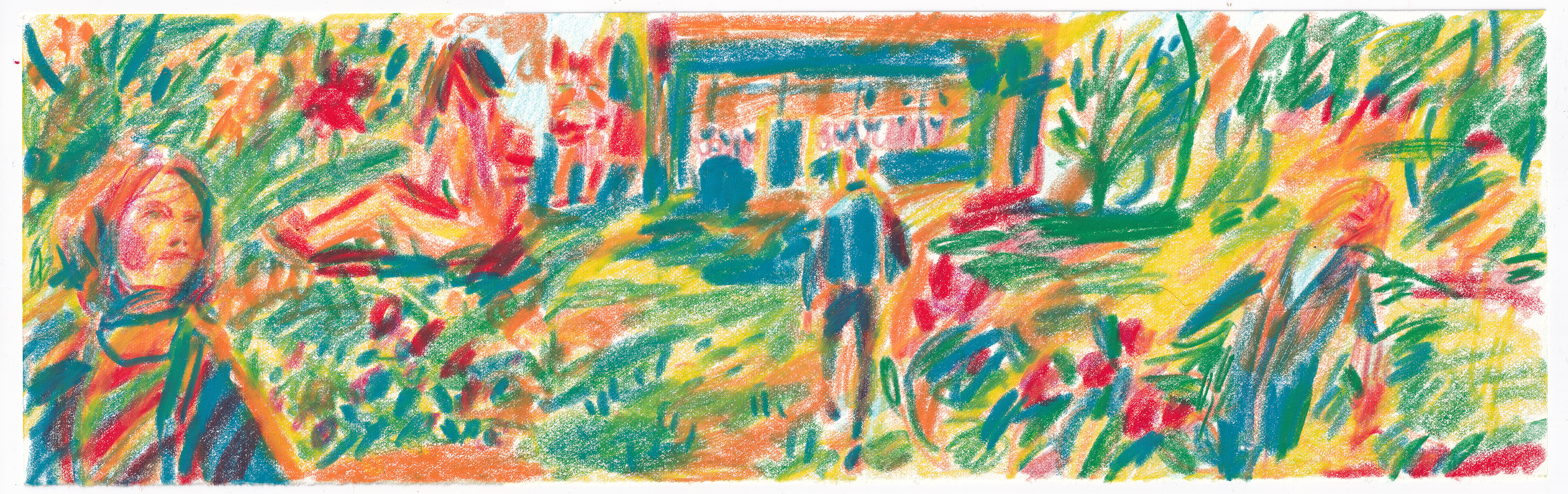 collaged landscapes and self-portrait drawings representing imagined and real places from my childhood and now.